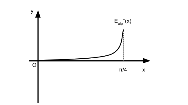 したがって、\( [0, \frac{\pi}{4}] \) の範囲で \( E_{ulp}^+(x) \) が最大となるのは \( x = \frac{\pi}{4} \) の時である。